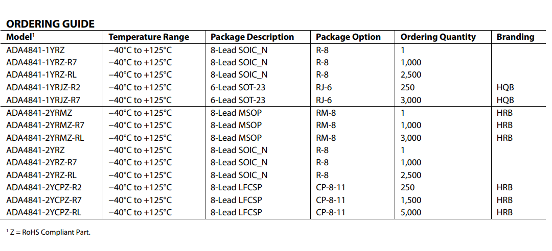 ** ADA4841-2YMZ : 고성능 작동 증폭기 **