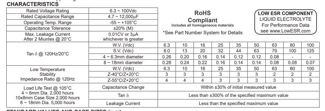 • 연장 된 하중 수명 (2,000 ~ 5,000 시간 @ +105 ° C)