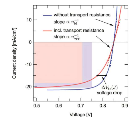 이 문제에 대한 이해를 심화시키기 위해 Deibel과 Saladina는 다양한 유기 태양 전지 세포 설계에 대한 광범위한 연구를 수행했습니다.조명 하에서 전류-전압 특성을 분석함으로써, 그들은 전하 생성, 재조합 및 전송이 어떻게 전력 변환 효율에 영향을 미치기 위해 상호 작용하는지 평가했다.그런 다음 그들의 결과를 SUNS-VOC 방법과 비교하여 수송 저항에 영향을받지 않는 대체 전류-전압 곡선을 구성합니다.