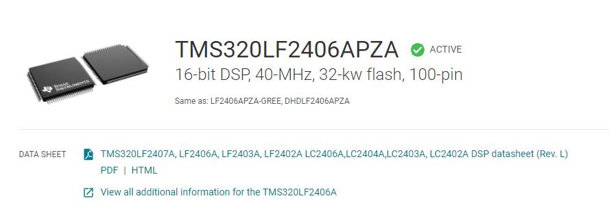 TMS320LF2406APZS 16 비트 DSP, 40MHz, 32kW 플래시, 100 핀